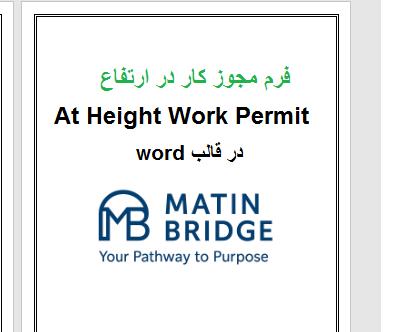 فرم مجوز کار در ارتفاع متین بریج به صورت Fillable (قابل پر کردن) طراحی شده است.