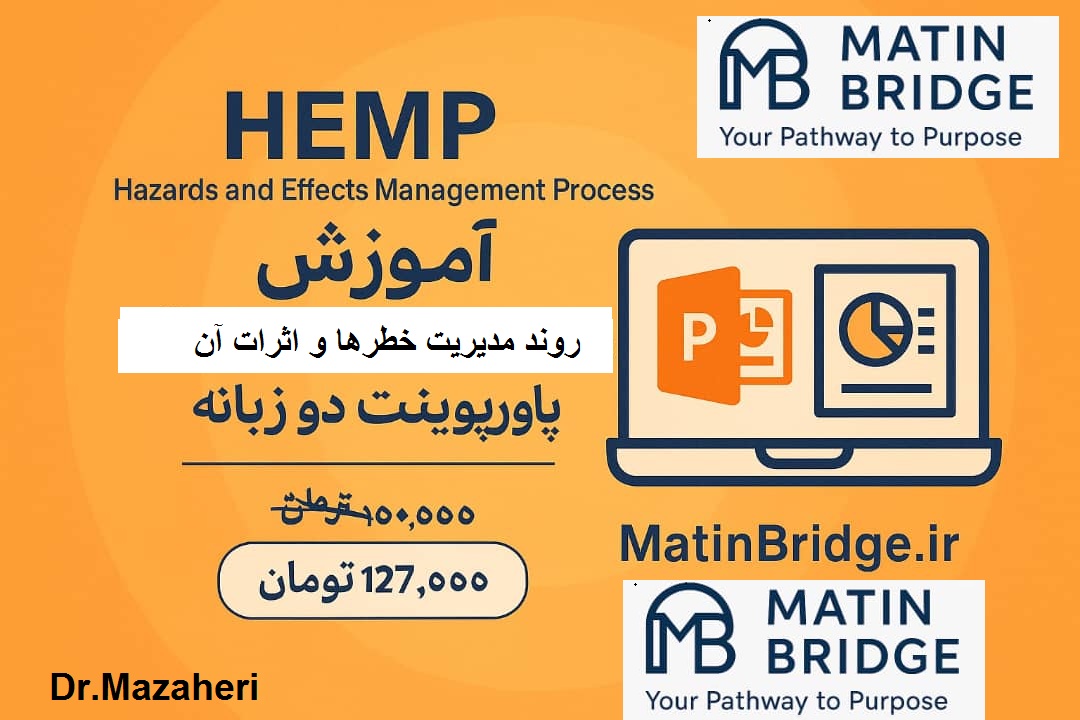 اگر به دنبال یک منبع کامل، استاندارد و قابل اجرا برای آموزش HEMP و ارتقاء سطح مدیریت ریسک در سازمان خود هستید، این پاورپوینت ۵۰ اسلایدی دو زبانه یک گزینه ایده‌آل است. با تخفیف ویژه، هم‌اکنون می‌توانید این مجموعه را از متین بریج تهیه کنید و شروع به بهبود سیستم مدیریت HSE خود نمایید.