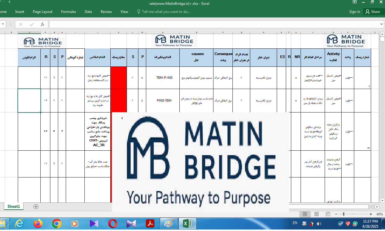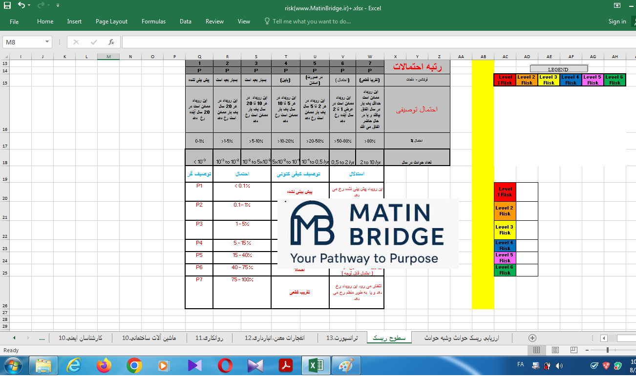 - ۳ فایل اکسل تخصصی با چندین شیت کاربردی شامل شیتهای اختصارات، سطوح ریسک فعالیتها و اقدامات کنترلی، ارزیابی ریسک حوادث و شبه حوادث، رتبهبندی سطوح ریسک و اقدامات کنترلی موجود و پیشنهادی.