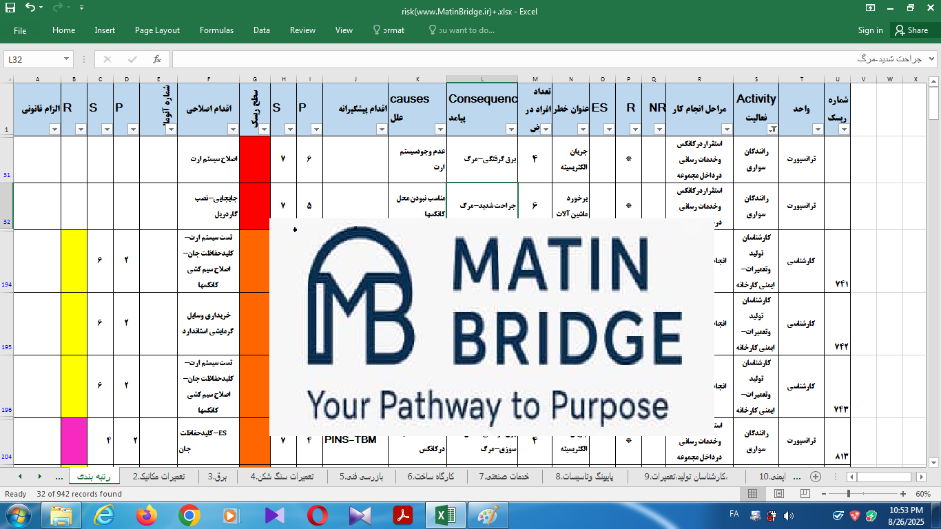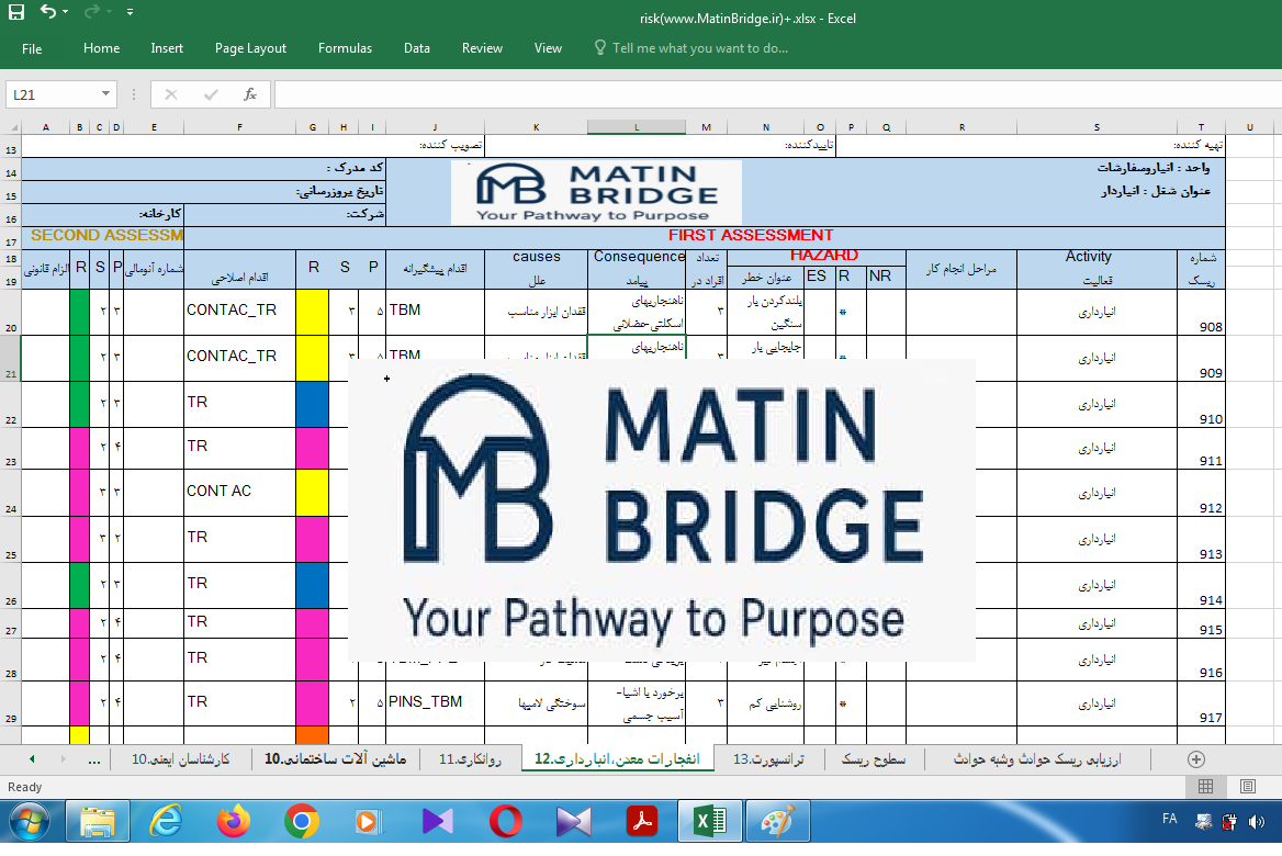- رتبهبندی سطوح ریسک و ارائه اقدامات کنترلی موجود و پیشنهادی.
