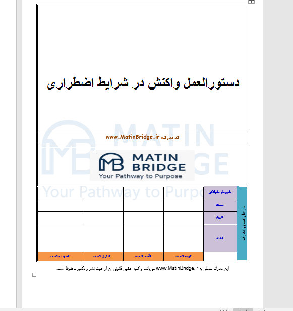 - فایل Word اصلی «دستورالعمل واکنش در شرایط اضطراری» (۲۰+ صفحه قالب استاندارد)