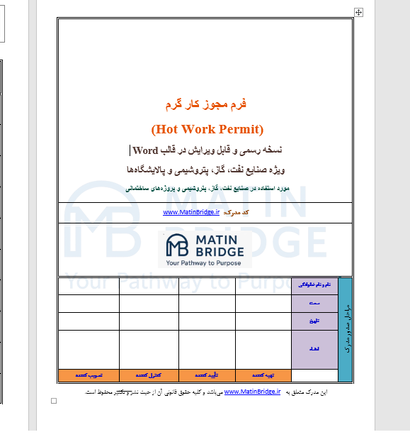 - فرم کامل Hot Work Permit در قالب Word (قابل چاپ و ویرایش)