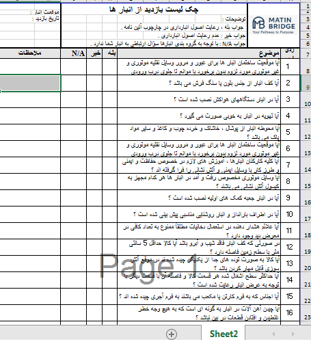 دانلود رایگان چک لیست بازرسی HSE انبارها-word قابل ویرایش مطابق با نیاز شما و سازمان یا شرکت شما. دانلود کاملا رایگان در وبسایت تخصصی www.MatinBridge.ir