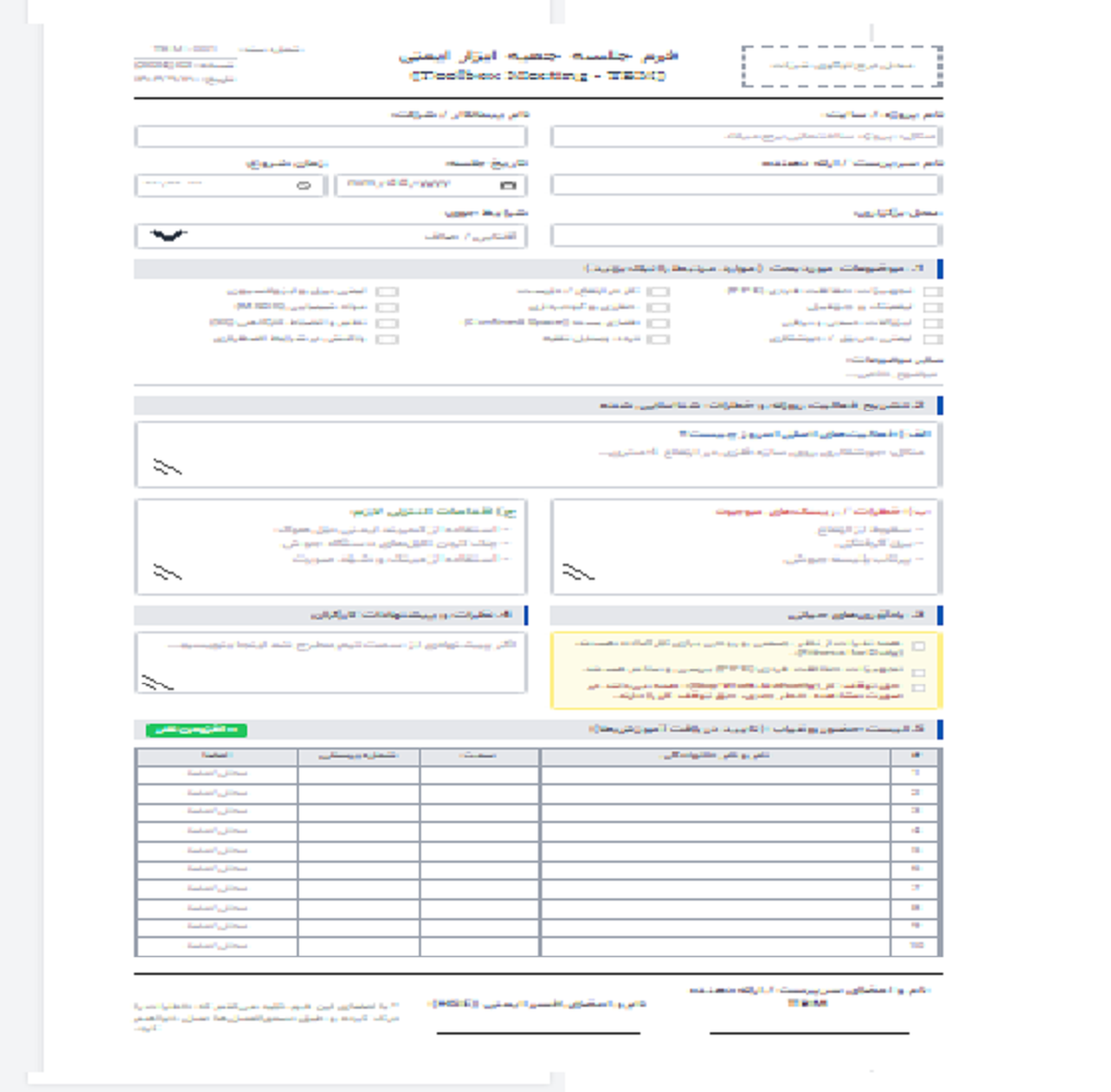 فرم TBM هوشمند و تعاملی (نسخه HTML) | استاندارد HSE با قابلیت ویرایش نامحدود